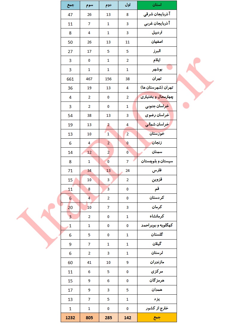 آمار المپیاد فیزیک به تفکیک استان و مقطع تحصیلی