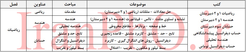 مباحث لازم ریاضیات در سطح مرحله اول و دوم المپیاد فیزیک مطابق جدول زیر است : (روی عکس کلیک کنید.)